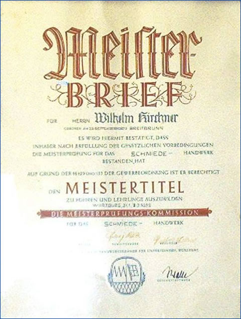 In den 20er Jahren des letzten Jahrhunderts übergab Andreas die Firma, die größtenteils Schmiedearbeiten und Hufbeschlagungen durchführte, seinem Sohn Josef. Die Region erlebte um die Jahrhundertwende durch die umliegenden Sandsteinbrüche einen enormen Aufschwung, zeitweise arbeiteten bis zu 1000 Beschäftigte in den Brüchen und sandsteinverarbeiteten Betrieben. Auch Josefs Betrieb profitierte davon, er erwarb weitere Flächen und ersetzte die Schmiede durch eine modernere. Aus dessen Zeit ist auch der erste erhaltene Meisterbrief von 1922 erhalten.