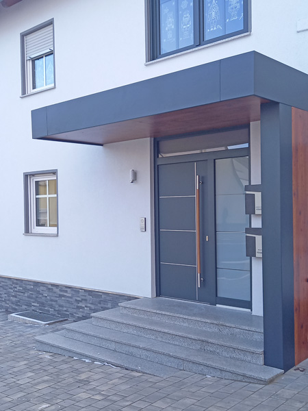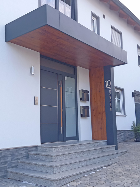 Eingangsbereich mit Vordach sowie Geländer |